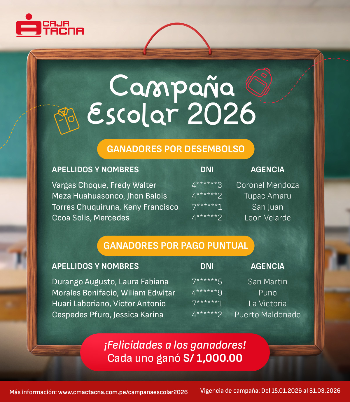 Haz CLICK AQUÍ para conocer a los ganadores de la campaña (sorteo realizado ante la Comisión Supervisora de Caja Tacna el miércoles 15/04/2026 en la Sede Principal de Caja Tacna).